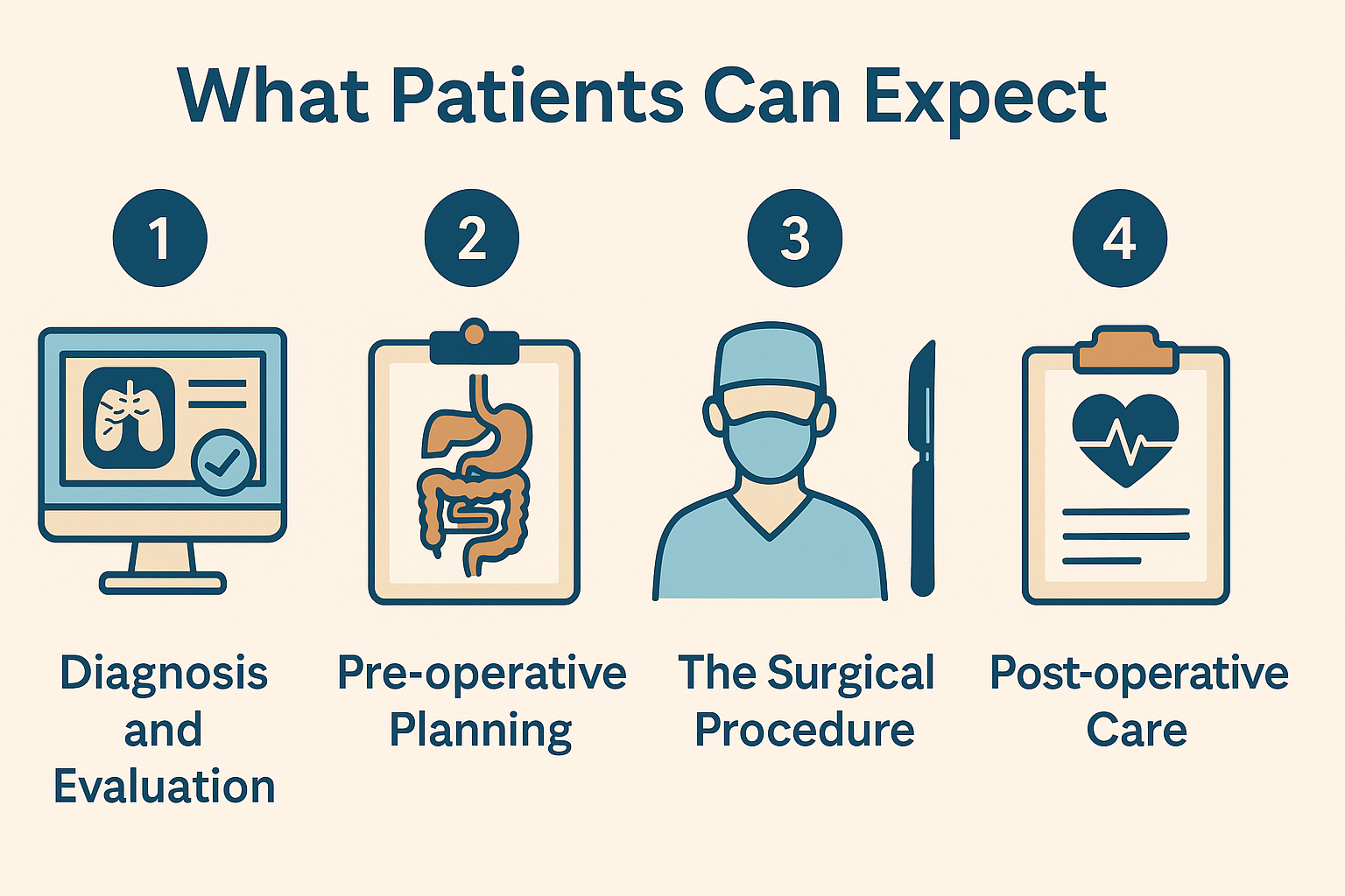 The journey begins with precise diagnosis through imaging (CT, MRI, PET scans), endoscopy, and biopsy. Once cancer is confirmed, its stage and spread are determined to plan the best possible approach.